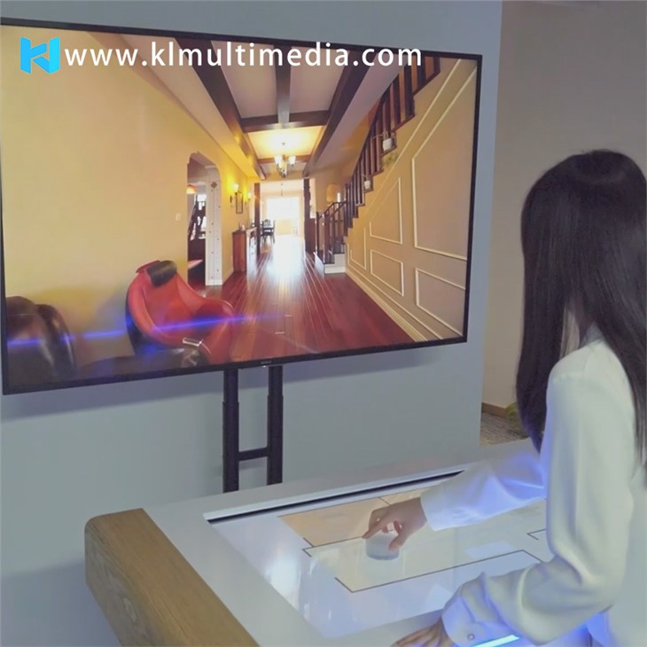 تعد طاولة ملموسة واحدة من المنتجات الأكثر شعبية وتطبيقها في مجال العرض التفاعلي والمعارض. يتم تشغيل أجهزة الكمبيوتر اللوحية ثلاثية الأبعاد الملموسة باستخدام جهاز الكل في واحد، والذي يجمع بين تقنية التعرف المادي والتجوال البانورامي للواقع الافتراضي. من خلال معالجة وحدة الاستشعار على طاولة التعرف المادي، عندما تكون الوحدة موجودة فوق المتحف، يتم عرض خريطة الواقع الافتراضي البانورامية للموقع المقابل للمتحف على الشاشة الكبيرة. ومن خلال التلاعب بوحدة الاستشعار، يمكن زيارة المتحف وزيارته بطريقة بانورامية، وهي تجربة تجوال جديدة في الواقع الافتراضي. يستخدم على نطاق واسع للعروض التفاعلية والمعارض.