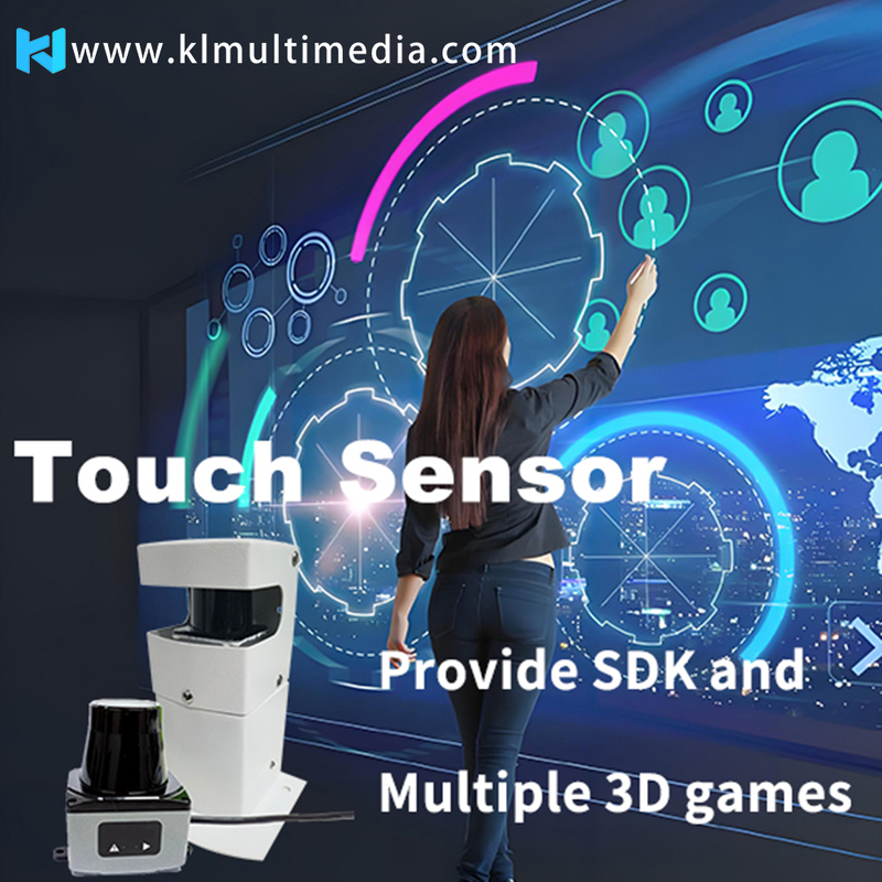 هل سبق لك أن تخيلت أن الجدار أو الأرضية يمكن أن تصبح طائرة قابلة للتفاعل بعد تركيب جدار أو أرضية بجهاز استشعار صغير؟ نعم، إنه مستشعر رادار، يُسمى أيضًا مستشعر الليدار وهو صغير بما يكفي بحيث يصعب اكتشافه. يمكن لمستشعر الرادار فقط اكتشاف مساحة كبيرة إلى حد ما لأن أصغر نطاق قياس لرادار KLEADER's TOF يصل إلى 10 أمتار إذا لم يكن هناك شيء يحجب ليزر الأشعة تحت الحمراء عديم الرؤية. أقوى رادار لدينا يمكنه قياس ما يصل إلى 40 مترًا. لذلك يمكن لرادار واحد فقط إضافة وظيفة تفاعلية إلى طائرة مساحتها 60 * 30 مترًا مربعًا إذا لم يكن هناك ما يعيقها. لا يستطيع الرادار اكتشاف مكان قدميك فحسب، بل يمكنه أيضًا اكتشاف مكان لمس إصبعك. من خلال برنامجنا التفاعلي، سيتم إرسال إحداثيات مكان التشغيل ومعرف كل كائن مشغل إلى اللعبة التفاعلية عن طريق بروتوكول TUIO، أو بروتوكول الماوس، أو بروتوكول اللمس، أو البروتوكول المحدد من قبل المستخدم. بالإضافة إلى ذلك، سنوفر لك أدوات تطوير البرمجيات (SDK) لتعليمك كيفية تطوير ألعابك. لنفترض أن شركتك ليس لديها مهندس برمجيات. في هذه الحالة، يمكننا أيضًا توفير منصة تطوير للمصممين أو الفنانين الذين يمكنهم إضافة المحتوى المخصص لهم، مثل مقاطع الفيديو الخلفية أو الصور أو تسلسلات الرسوم المتحركة، إلى المنصة بحيث تتحول المنصة إلى لعبة تفاعلية مع المحتوى الخاص بك. على الرغم من أنها طريقة بسيطة دون كتابة أي رموز، إلا أنها تدعم التفاعل البسيط فقط.